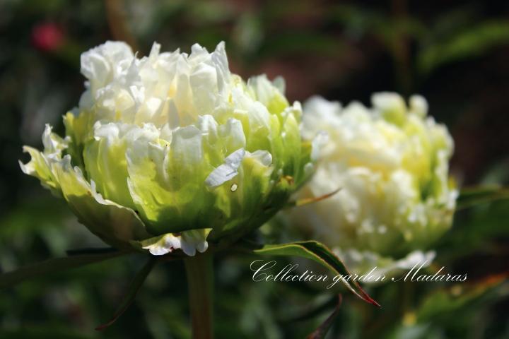 Puspildīta, pildīta, īsti zaļas krāsas peonija ar baltiem ziedlapu galiem. Spēcīgi ziedi! Stingri ziedkāti. Pildījumu parāda sākot ar trešo ziedēšanas gadu. Viegla smarža. Vidējs ziedēšanas laiks.