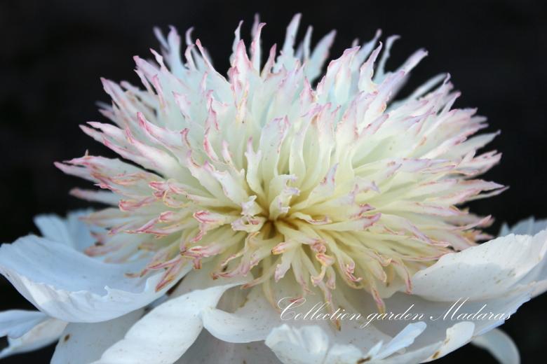 Japāņu tipa peonija ar dzeltenu staminodiju pildītu centru. Gaiši, krēmbalti ziedi, pārziedot staminodiju gali krāsojas rozā, skaists, zaļš lapojums un patīkama smarža. Stingri ziedkāti. Vidējs, vēls ziedēšanas laiks.