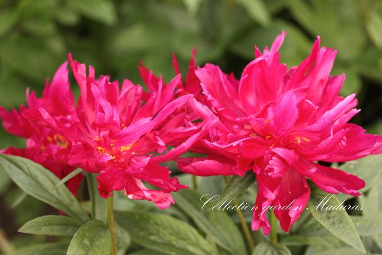 Koši karmīnsarkani, sarkani `zirnekļveida -sprogaini` ziedi. Vienā krūmā ir gan vienkārši, gan puspildīti ziedi. Stingri ziedkāti! Vidējs līdz vēls ziedēšanas laiks.